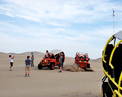 VER ITINERARIOA la hora programada nuestra excursión al desierto de Huacachina en Carros Areneros se inicia con el recojo de sus respectivos hoteles y serán trasladados al punto de partida. Donde abordaremos los famosos carros areneros 4x4, y emprenderemos nuestro paseo al medio del desierto de Huacachina, donde nuestro recorrido se realizara por grandes y pequeñas dunas de arena realizando un paseo muy parecido al de una montaña rusa, luego nuestro conductor hará algunas paradas en zonas estratégicas para que nuestros clientes puedan practicar este deporte muy popular de la zona llamado "Sandboarding" o tabla sobre arena.